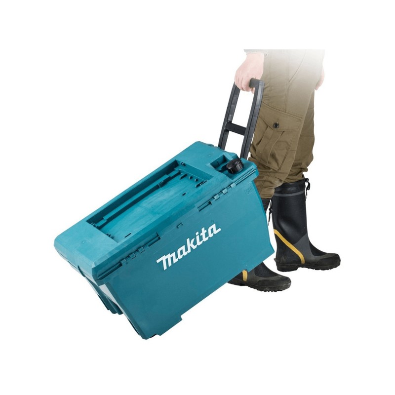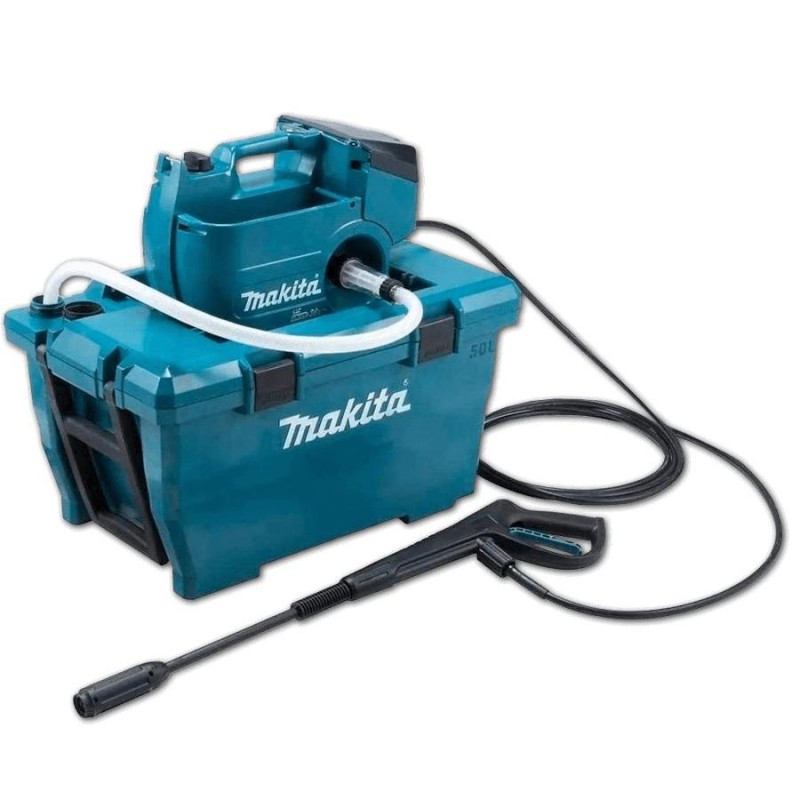 Πραγματικά ασύρματο πλυστικό πίεσης Δεν χρειάζεται να συνδεθείτε σε βρύση ή πρίζα (Λειτουργεί με δύο μπαταρίες MAKITA 18V Li-ion. 50L δοχείο που λειτουργεί ως χώρος αποθήκευσης και μεταφοράς. 2 ταχύτητες.